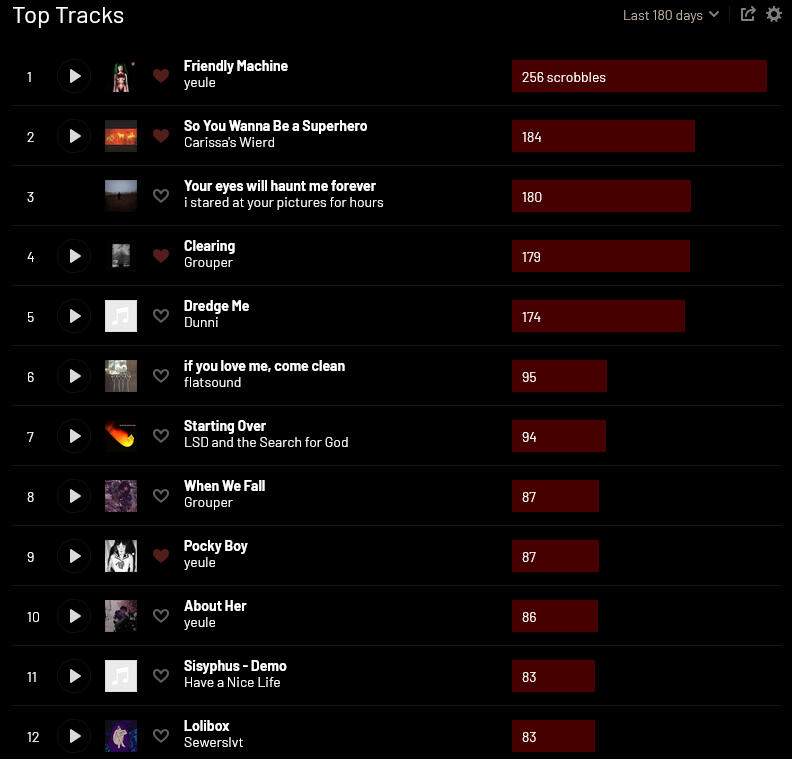 ^^^chart of last 180 days of music listening